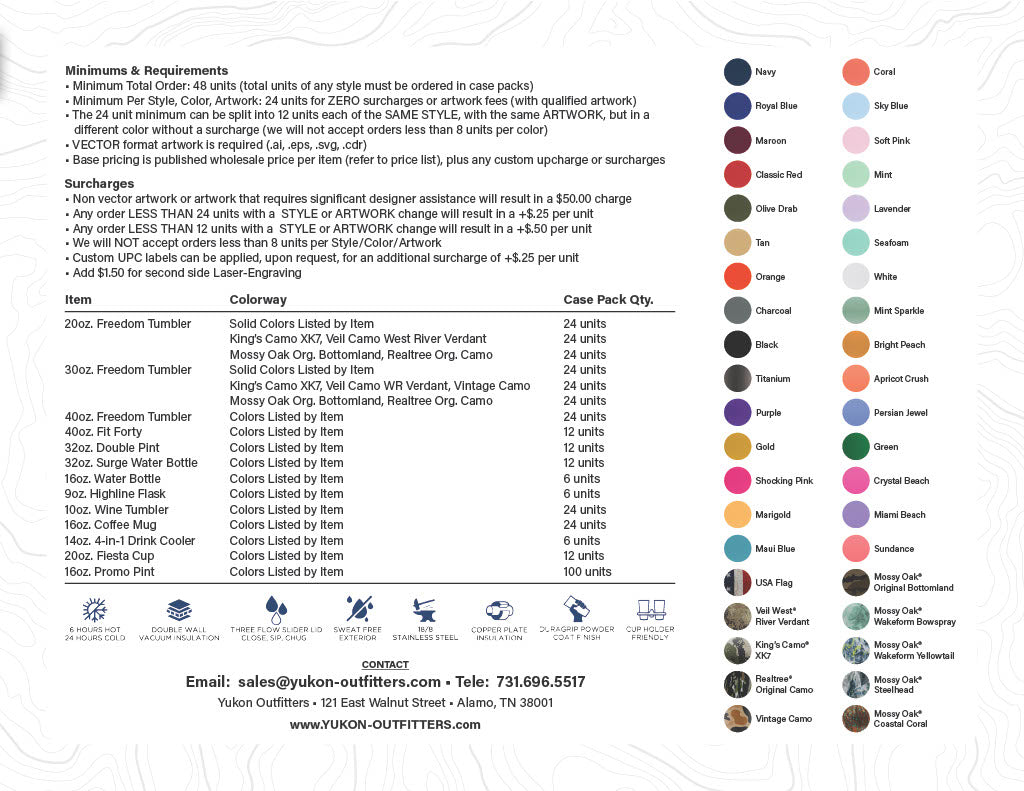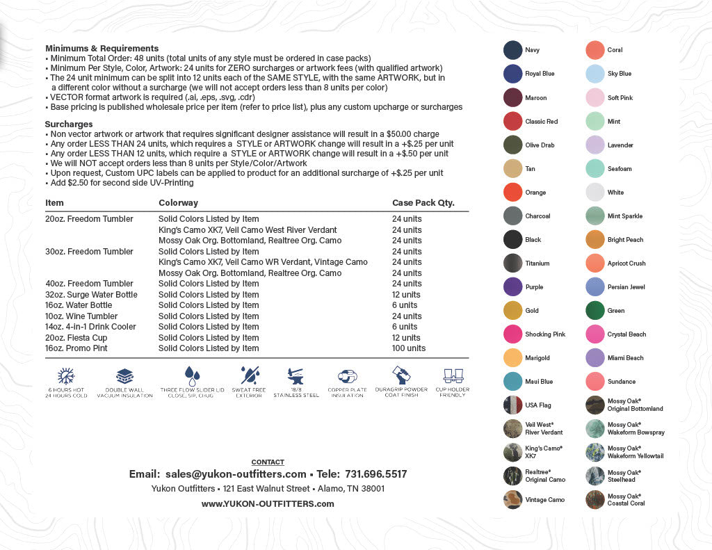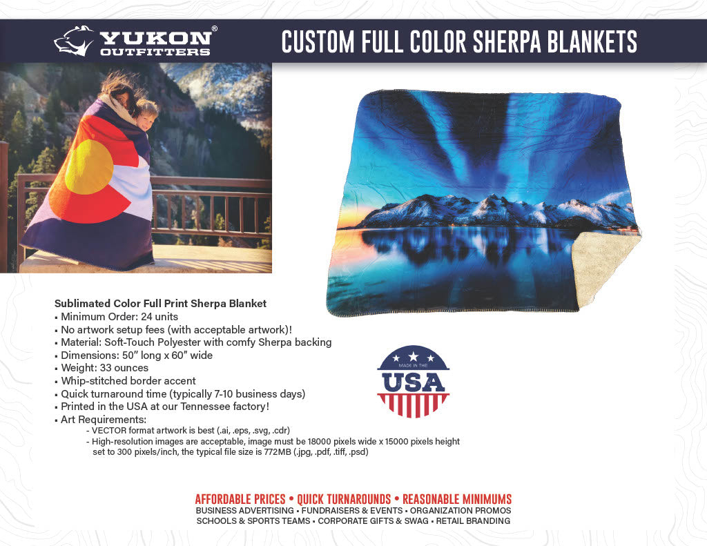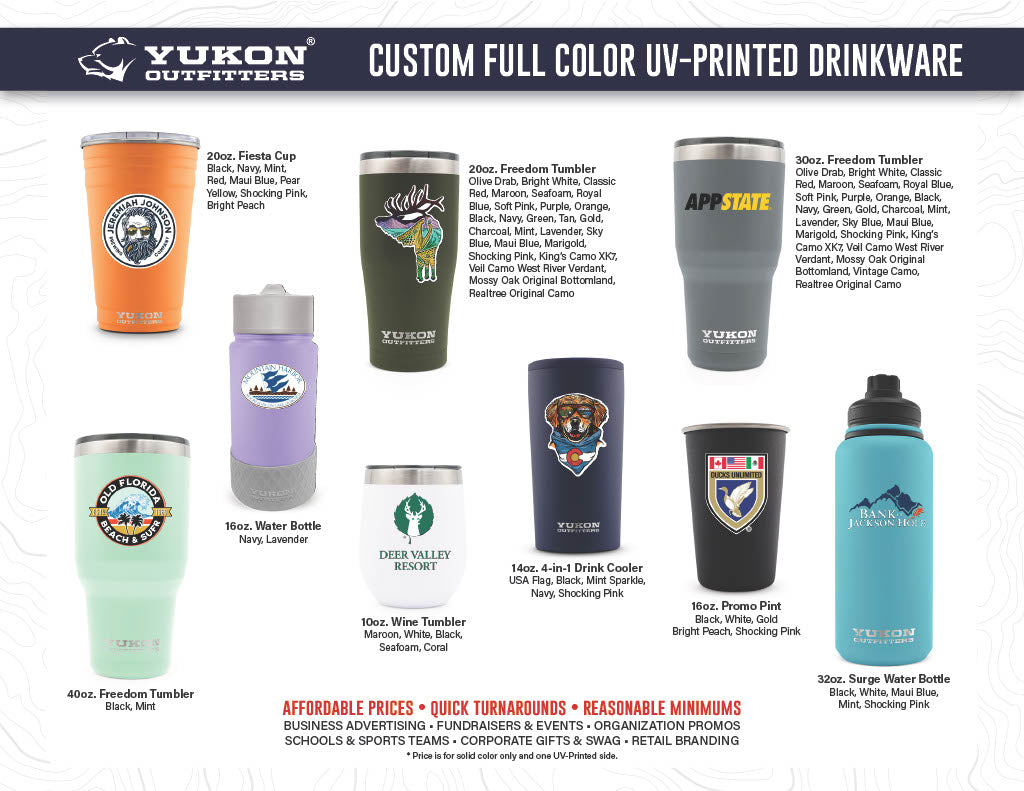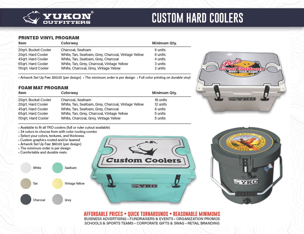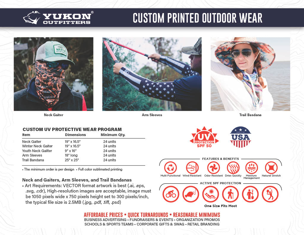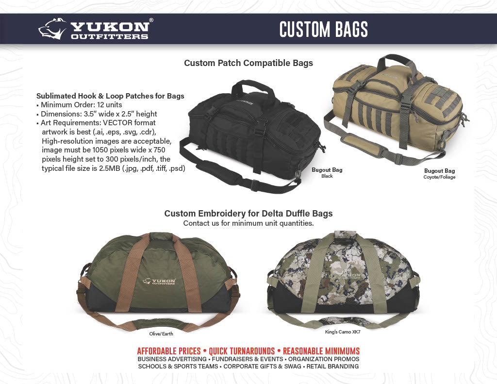 Thank you for your interest in Yukon Outfitters - Custom Products. We are excited about learning more about your needs, and making some great products with your unique logo and artwork.